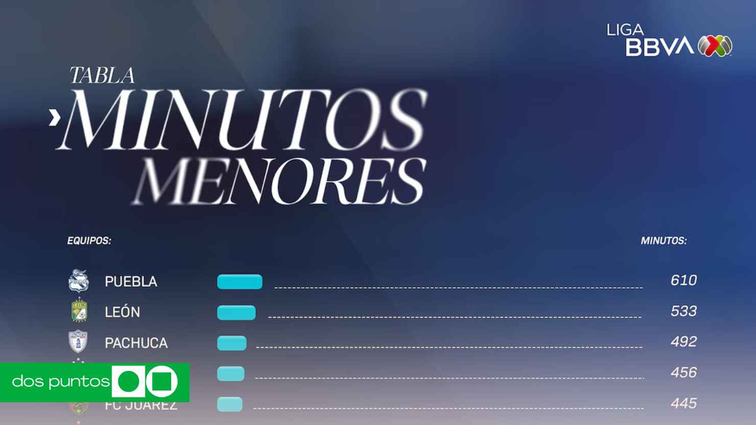 La sorpresa, para bien, es Puebla, que sigue firme en la punta con 610 minutos acumulados. No es casualidad: han entendido que se puede competir sin tener que contratar refuerzos de 33 años con rodillas de cristal. Les sigue León con 533, y el podio lo cierra Pachuca con 492, fiel a su ADN de cantera.